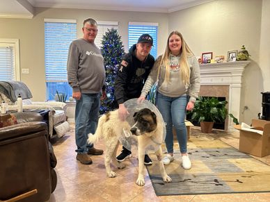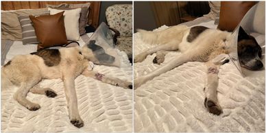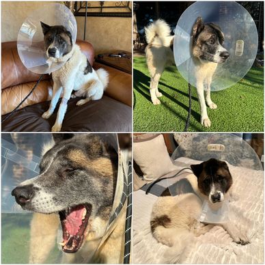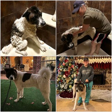 Bear’s dad is out of town for the holiday so our team will be taking care of Bear until his family returns. ~ Poor baby has had it rough the past 3.5 months with being rehomed, then escaping and being on the run, and then suffering such horrible trauma. We will do our very best to help him recover, rehabilitate, and set him up for a successful future.