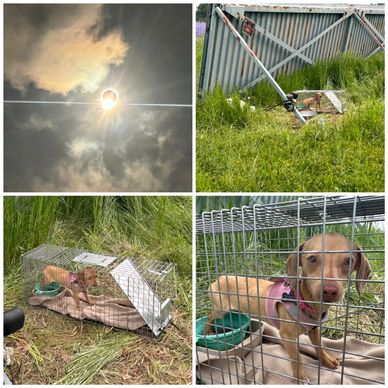 Tragically we were unable to accept Ginger‘s case right away because we were working another capture case in Farmersville. In the meantime we provided Ginger‘s family with step-by-step guidance on exactly what to do. We advised for them to print and hand out a flyer that we made for them to all of the homes and businesses in the immediate area to try and get sightings, and to set up a feeding station with food and familiar bedding items. They followed our instructions precisely! Sadly, Ginger never visited their feeding station.